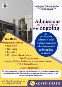 Institute of Cultural Studies, Beside Pit Theater, OAU, Ile-Ife.
